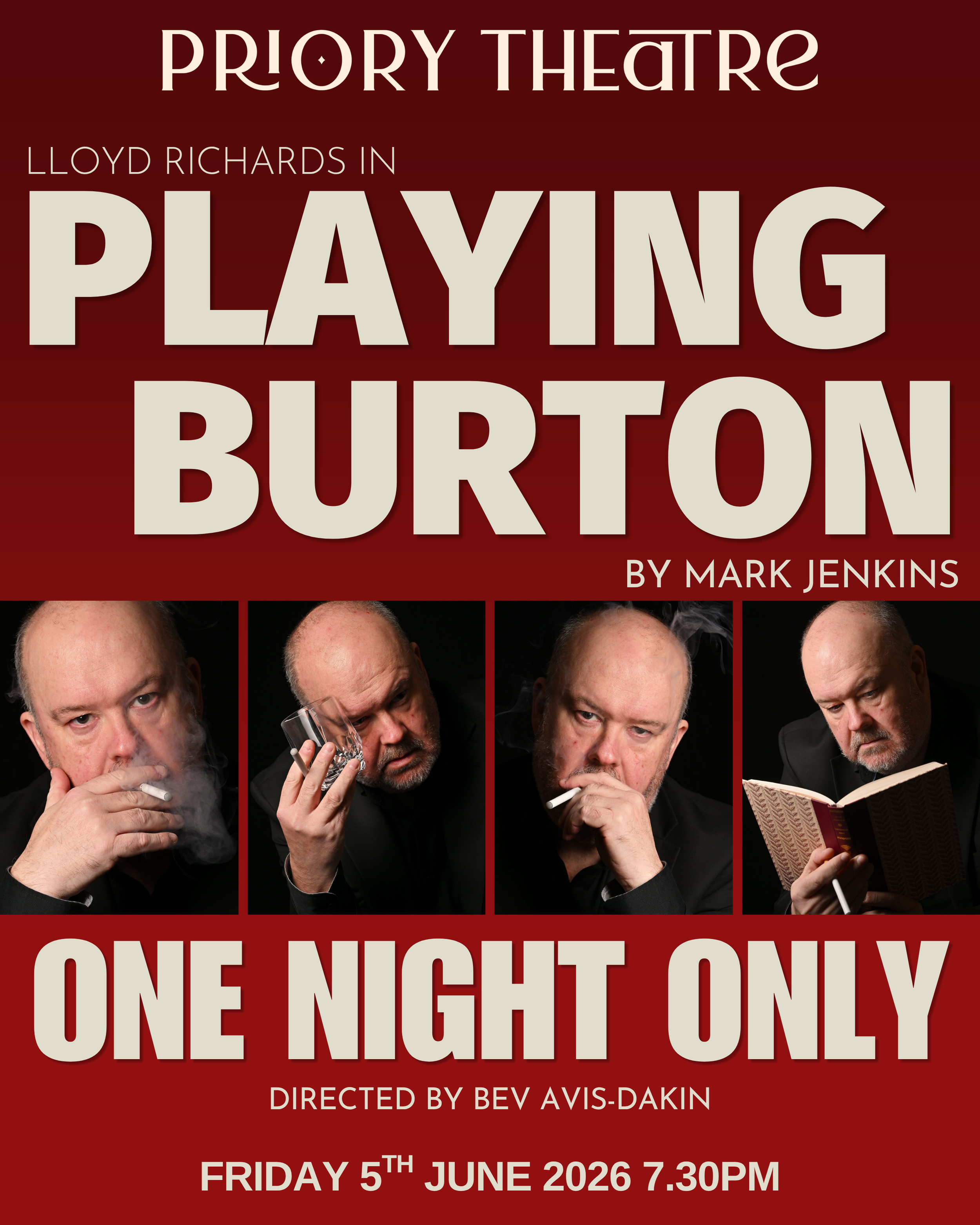 With wit, intensity and emotional honesty this one man play delves into Burton’s fierce ambition, his legendary love affair with Elizabeth Taylor and his lifelong struggle with fame offering audiences an intimate portrait of the man behind the legend.